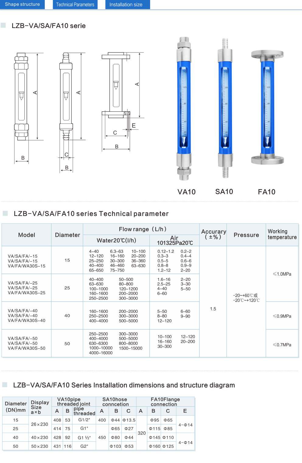 LZB-VA/SA/FA 10型玻璃轉(zhuǎn)子流量計(jì)
