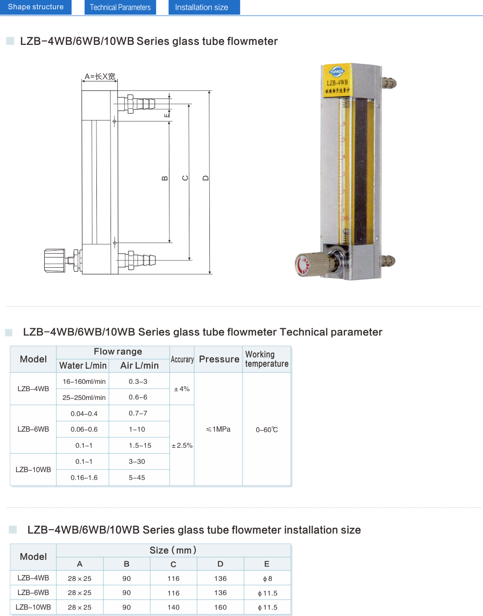 LZB-2/3/4/6/10WB型玻璃轉(zhuǎn)子流量計(jì)